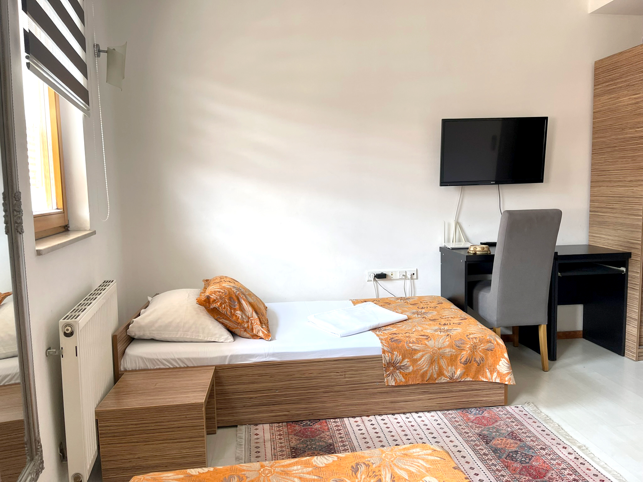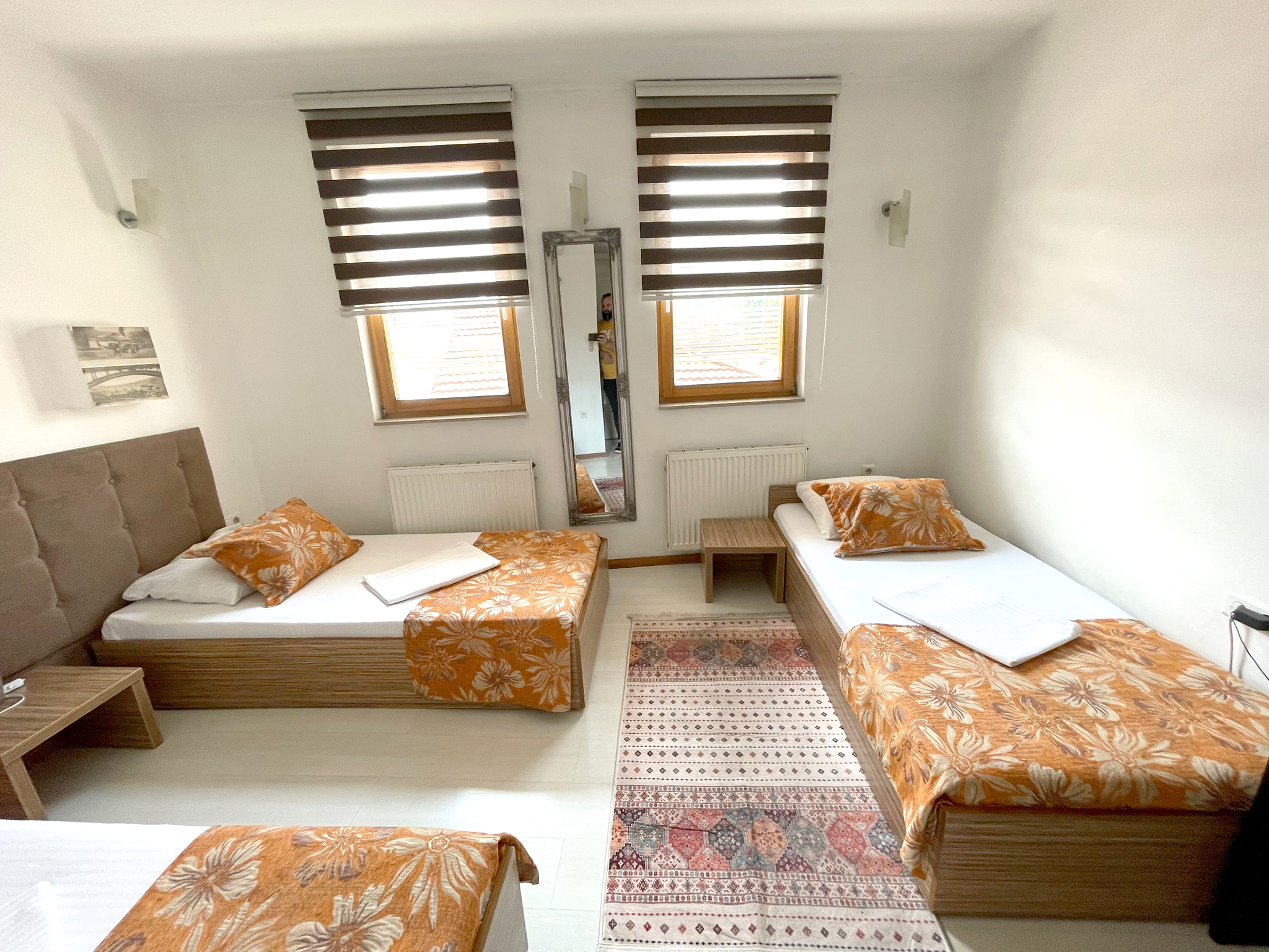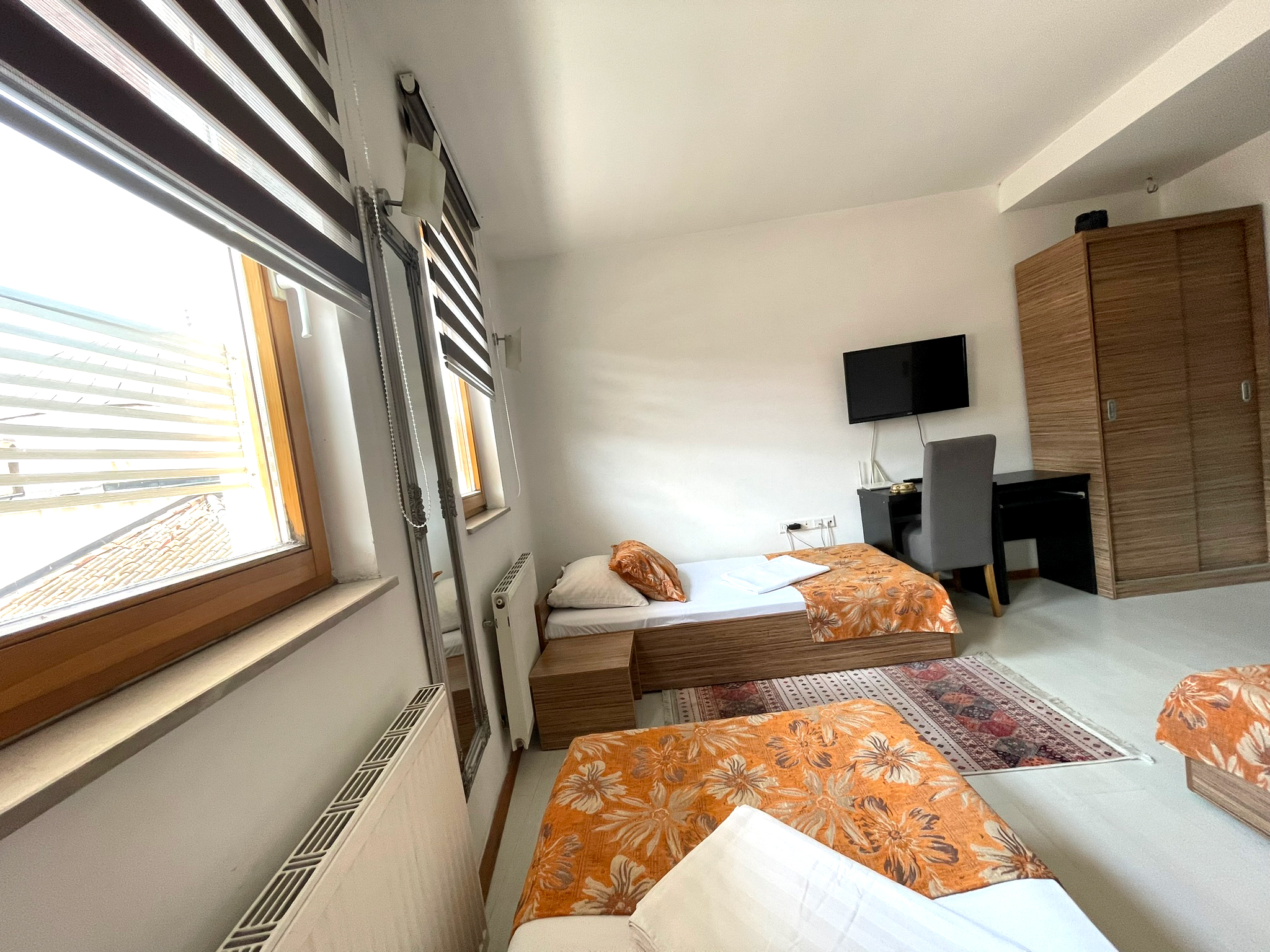 Sobe su opremljene sa svim potrebnim sadržajem za ugodan boravak, uključujući udoban krevet, radni stol, TV sa kablovskim kanalima, te besplatan Wi-Fi. Kupaonica je privatna i sadrži tuš, sušilo za kosu, toaletne potrepštine i peškire. Interijer ove sobe kombinira tradicionalne sarajevske elemente s modernim udobnostima, pružajući gostima ugodnu i toplu atmosferu.